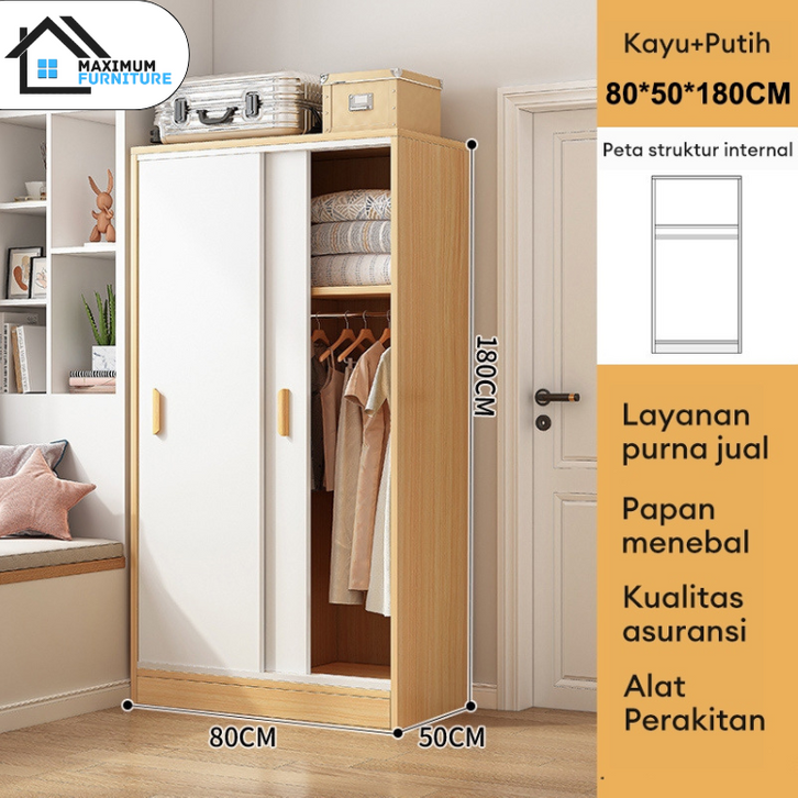 LEMARI PAKAIAN KAYU SLIDING 2 PINTU GESER 80CMX50CMX180 CM 120CMX50CMX180 CM GANTUNGAN MINIMALIS JUMBO HIGH QUALITY