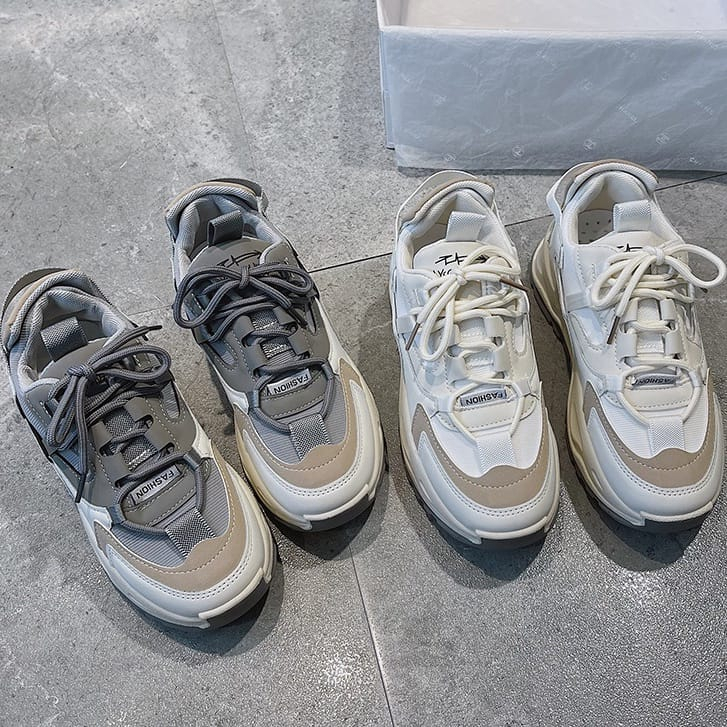 FREE BOX" (Size 37 - 41) Jungkook Sepatu Sneakers Wanita Sport Shoes Grey Krem 9009 FREE ONGKIR