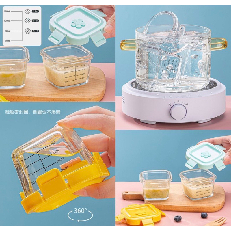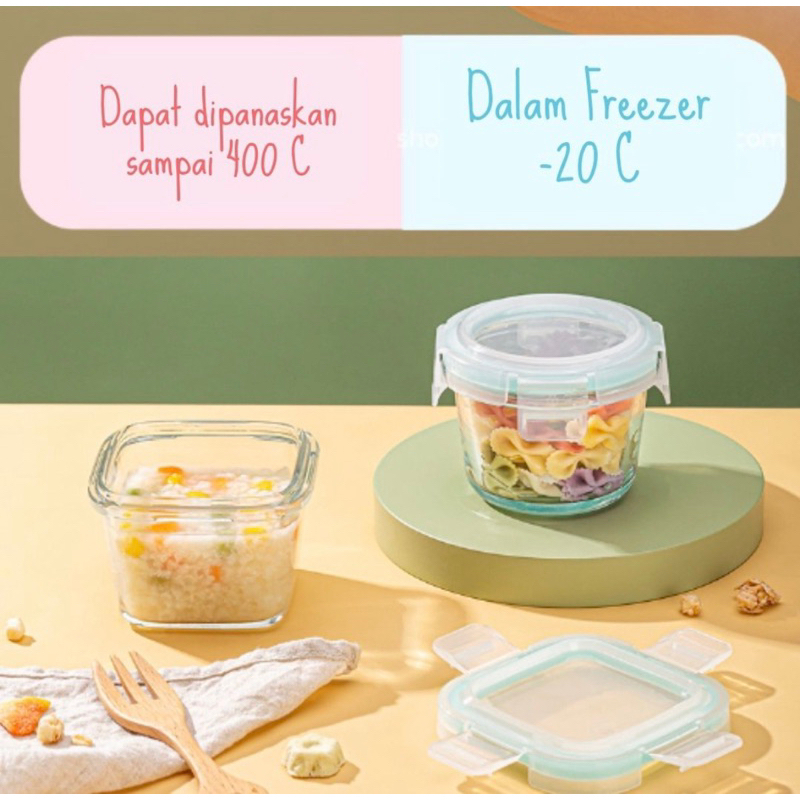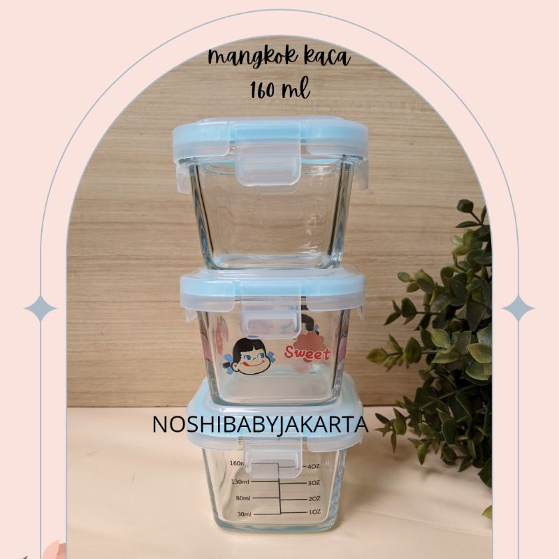 WADAH MPASI MANGKUK KACA/ MANGKOK KACA KOTAK 160 ML WADAH MAKANAN KACA DENGAN TUTUP MANGKOK KACA WADAH MPASI