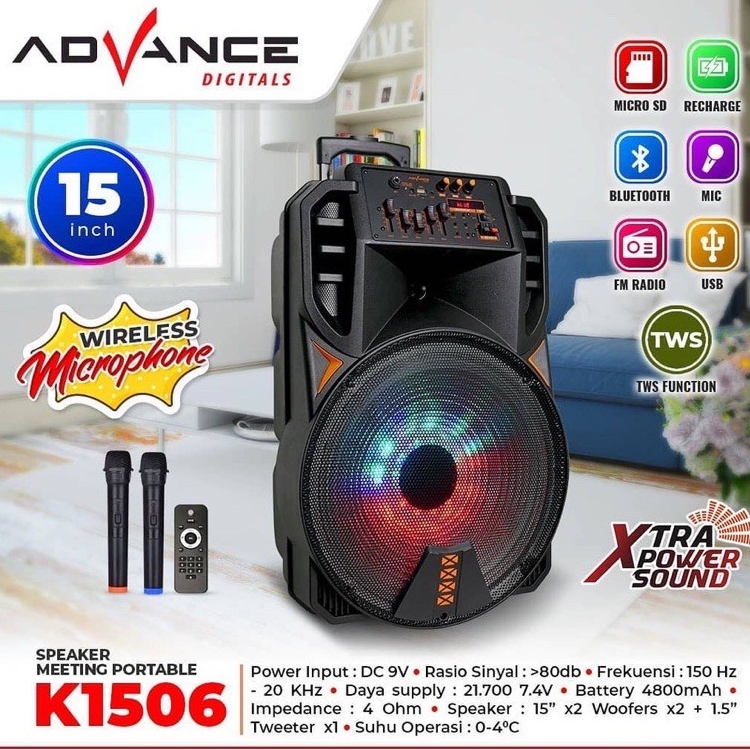 Advance K1506 1506 Speaker Meeting Bluetooth 15 Inch Free 2 mic wirelles Original Garansi Resmi