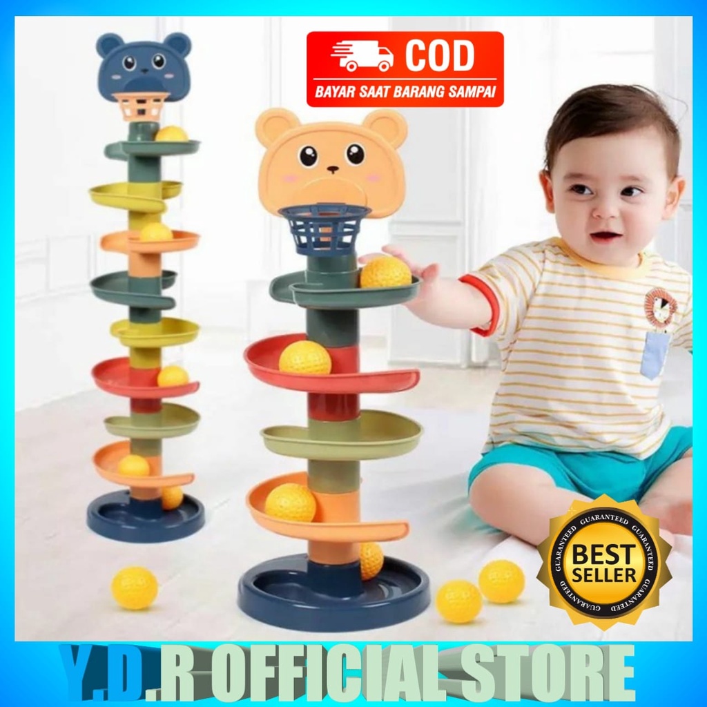 MAINAN ANAK EDUKASI SELUNCURAN JALUR BOLA KELERENG PUZZLE ROLLING BALL 7 TINGKAT + 3 BOLA PROMO TERMURAH