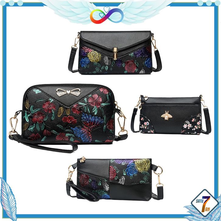 Tas Selempang Wanita Motif Bunga Tas Cewek Korea Fashion Style Kasual Sling Bag Women PU