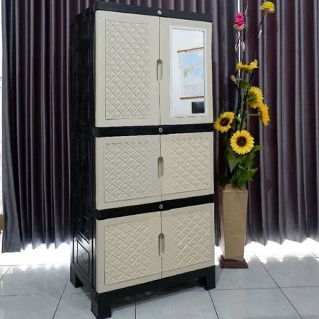 Gratis ongkir - Lemari Baju jumbo Lemari Plastik AQUOSE JUMBO Susun 4 PLUS Cermin - KACA Full Kunci - lemari plastik