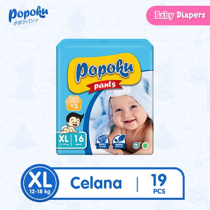 Popok Pampers Pempes [POPOKU PANTS] Popok Bayi Celana EKSTRA ISI Size XL 19 Pcs Tipe Celana Termurah