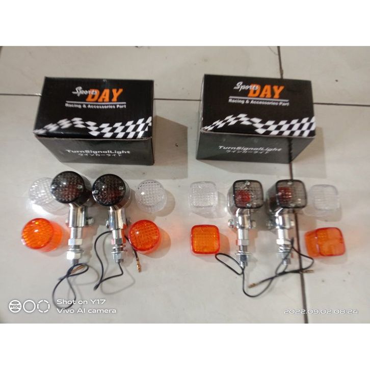 Sein Palu Kotak Bulat SPORTS DAY Besi Lampu Reteng Sen Riting reting cb kaca mika smoke murah