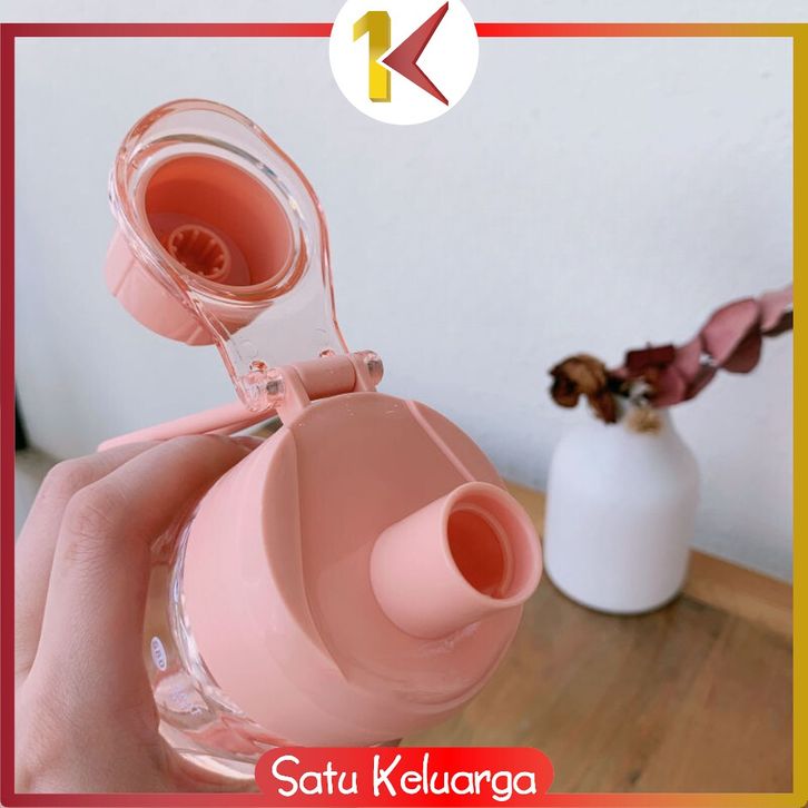 SK-C910 Botol Minum Flip Plastik BPA FREE 600ML dengan Gantungan Portable / Sport Bottle Botol Air Minum Transparan