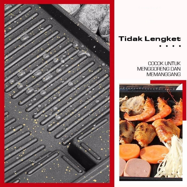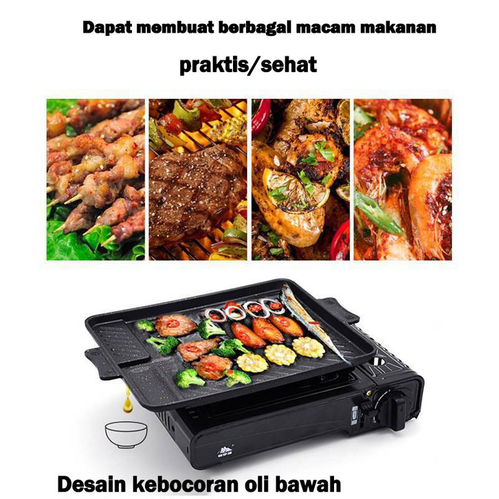 Alat Pemanggang Daging BBQ Multi Grill Pan Anti Lengket Bahan Teflon Tebal Set Model Koran Serbaguna plus kompor portabl