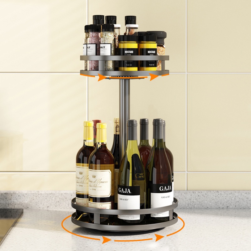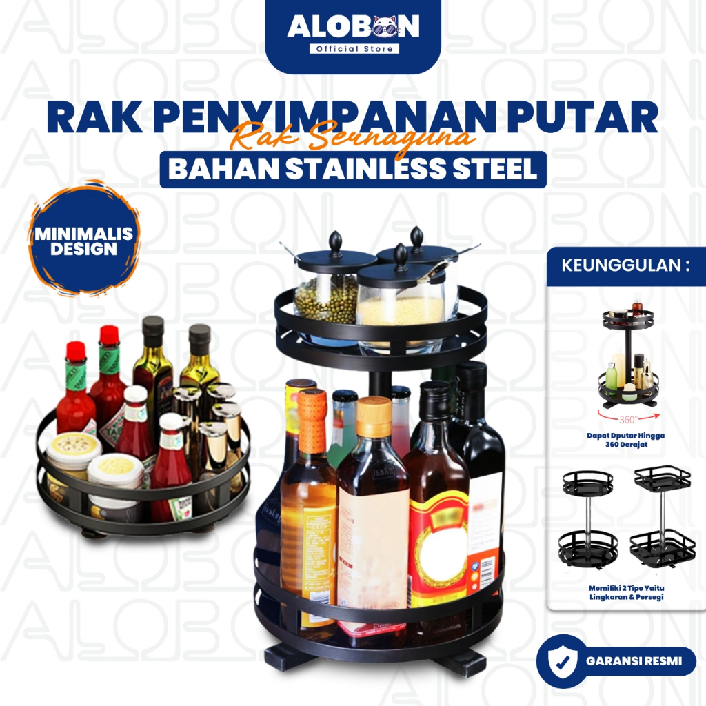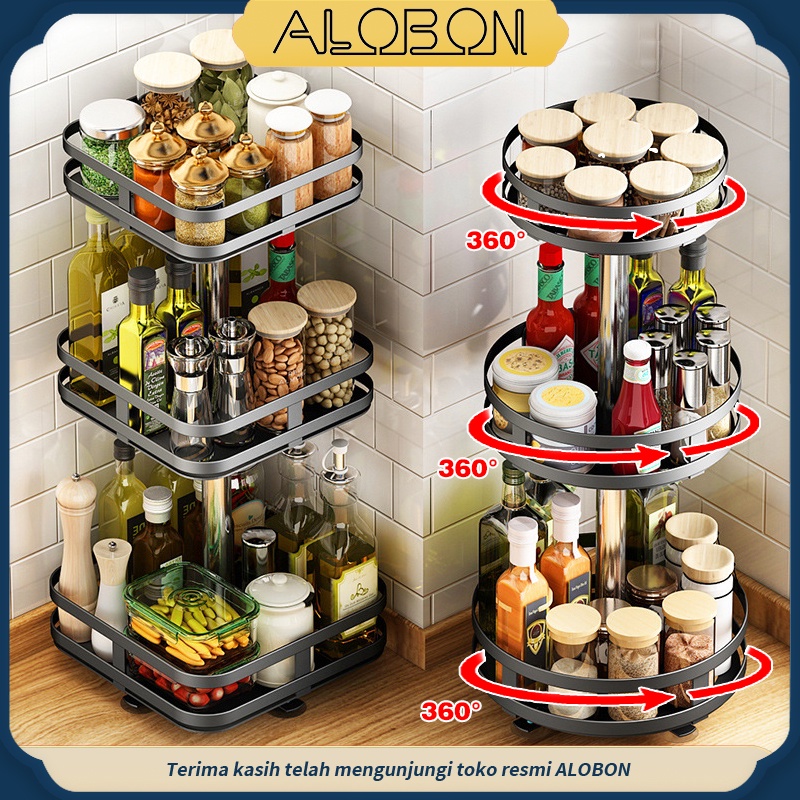 Rak Bumbu Putar Berputar 360 Derajat/Rak Bumbu tingkat/ Rak Bumbu Dapur Stainless Rotate Kitchen Spice Rack Organizer H