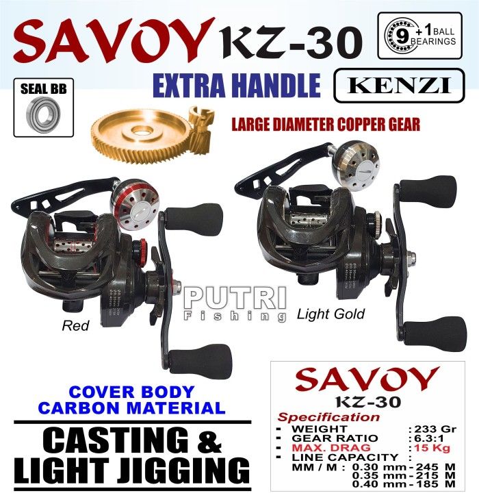 REEL PANCING MERAH KENZI SAVOY KZ 30 EXTRA HANDLE (BODY CARBON) TERLARIS