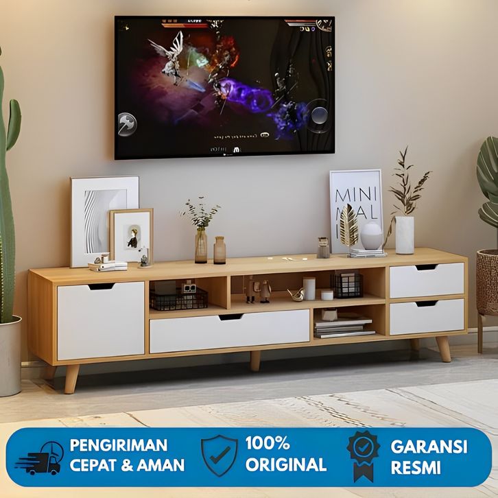 MEJA TV MINIMALIS MODERN BERBAGAI UKURAN BUFET RAK RUANG TAMU AESTHETIC 4FT 5FT KAYU JATI BESAR ANTI KEROPOS