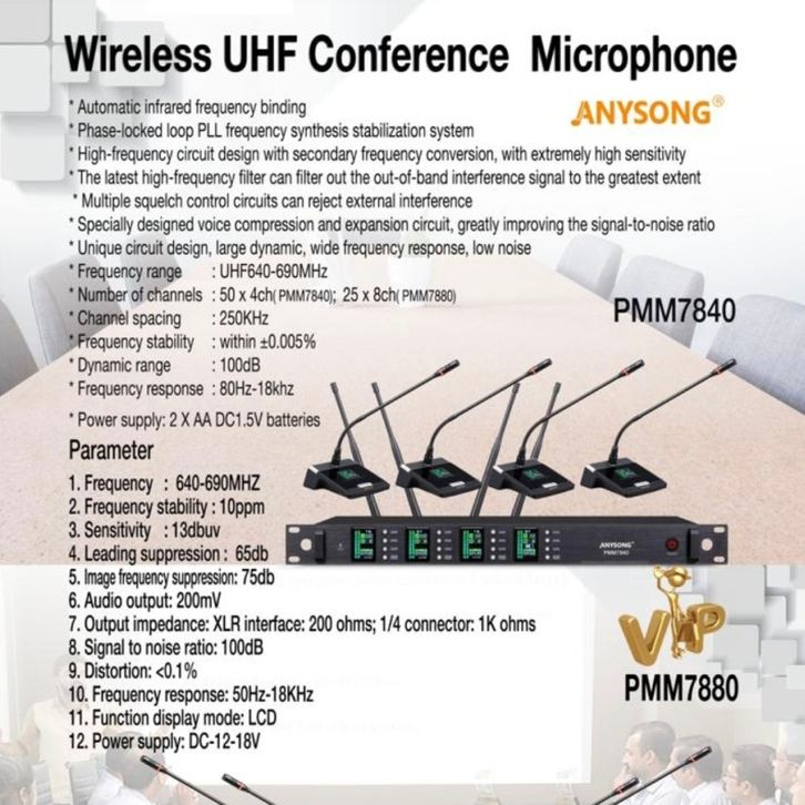 Mic Wireless Podium Anysong PMM 7840 Original 4 Meja Conference