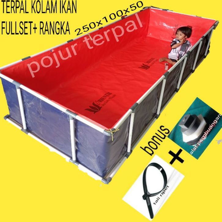 TERPAL KOLAM IKAN UKURAN 250X100X50 FULLSET RANGKA