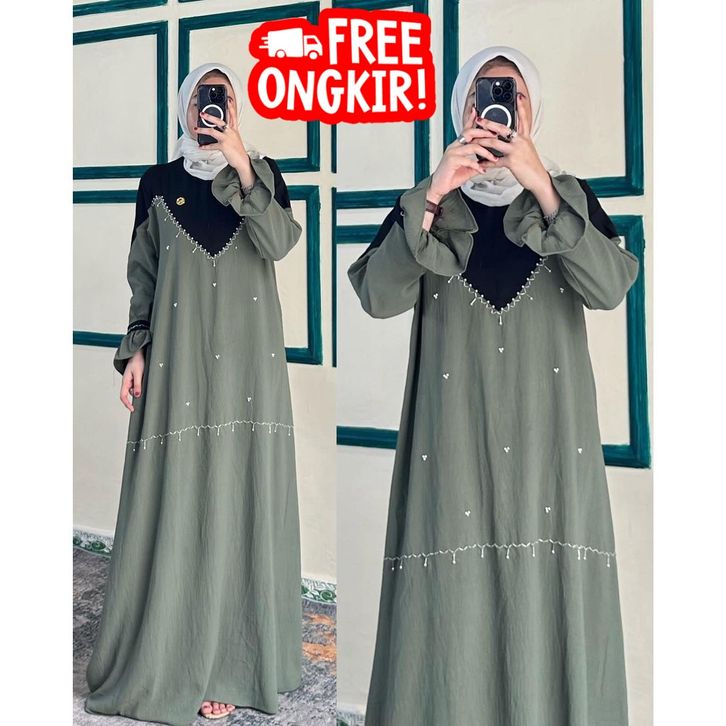 Cailey Dress Maxy Gamis Muslim Wanita Polos Basic Matt Cringkle Airflow Apk Payet Premium OOTD Kondangan