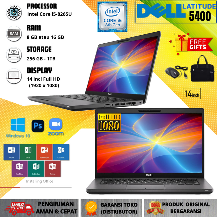 Laptop Dell Latitude 5400 , 5450 , 5470 , 5480 Core i7 Gen 8 Ram 16GB / SSD 512GB 14''Inch FHD Free Tas & Mouse