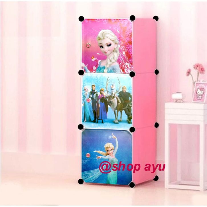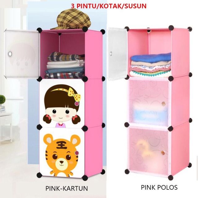 Lemari pakaian lemari plastik lemari baju anak rak buku rak topi 3 kotak/pintu/susun