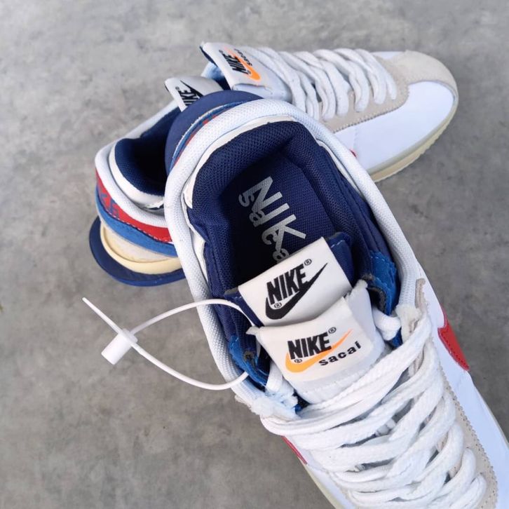 SEPATU NIKE CORTEZ 4.0 SACAI WHITE UNIVERSITY RED BLUE ORIGINAL BNIB FULL TAG BARCODE BAHAN LEATHER KULIT