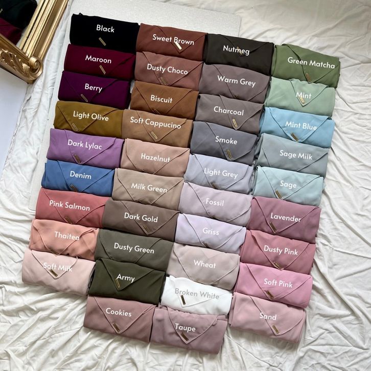Black , Fuschia , Dusty Green, French Blue, Brick, Hazelnut, Dusty Pink, Dark Jeans , Berry, Green matcha , Dark Gold, Soft Cappucino , Charcoal, Light olive, Blush , Mint Blue, Sweet Brown, Milk Green , Biscuit, Nutmeg, Lavender, Warm Grey , Sage , Fosil , Soft Milo, Navy, Dark Lemon , Denim, Cookies , Light Grey, Smoke , Army, Maroon , Dark Lylac , Pink Salmon, Dusty choco , Blue El , Dusty tosca, Sand, Thaitea, Soft latte , Baby blue, Dusty , Soft lylac, Coffee, Griss, Mint, Soft Milk, Sage Milk , Emerald