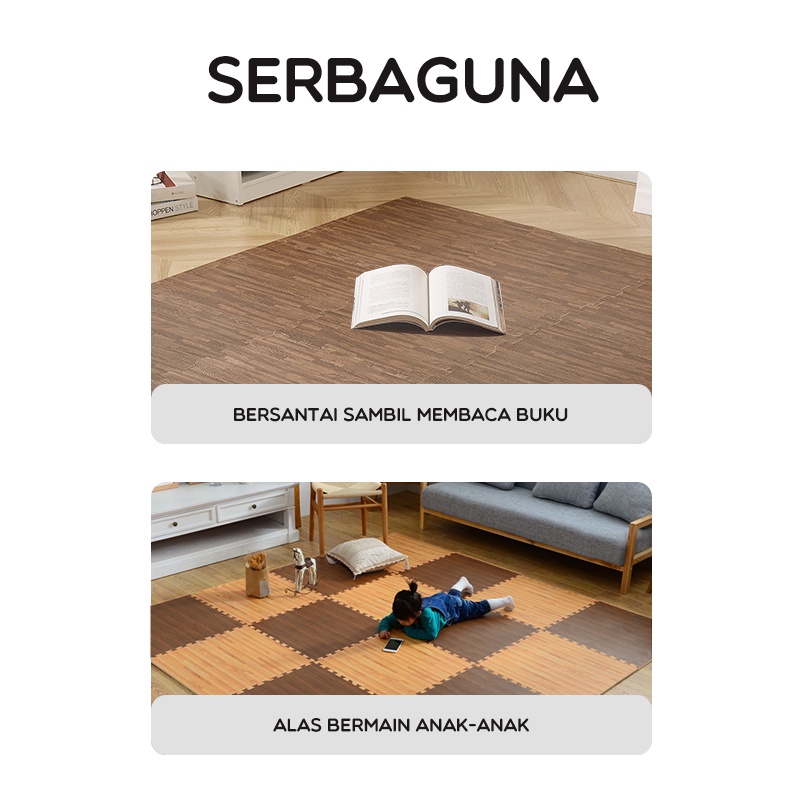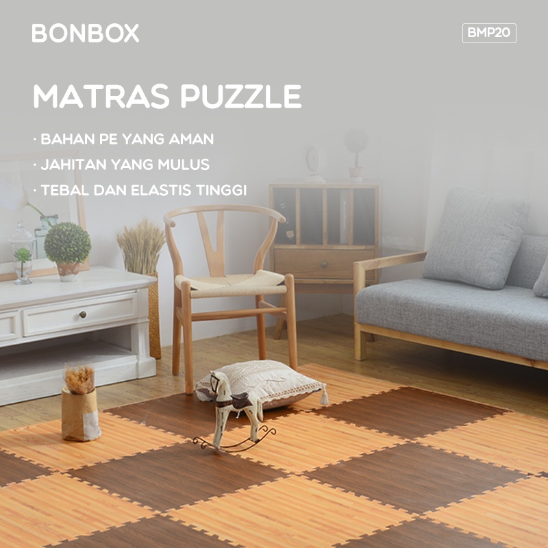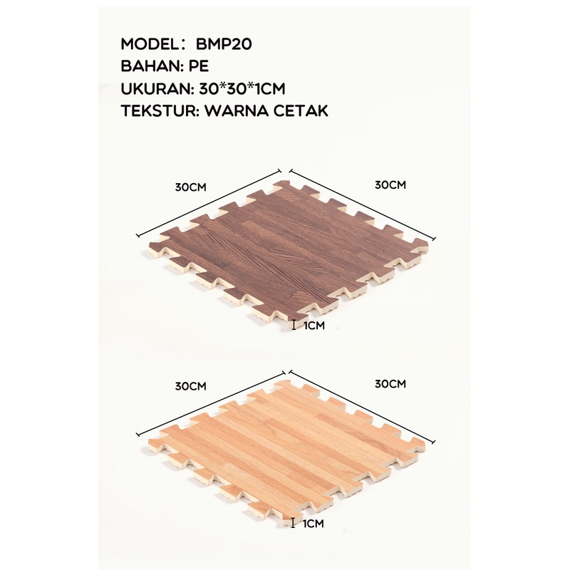 BONBOX 30x30CM Matras Puzzle Lantai Printed Motif Kayu Bahan PE ISI 9 Grain Pattern Mosaic Floor Mat BMP20 BMP10 BMP30