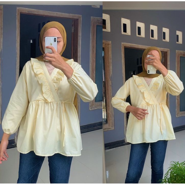 BLOUSE WANITA BAJU ATASAN CEWE YOONA BLOUSE RUFFLE KOREA STYLE TERMURAH TERLARIS