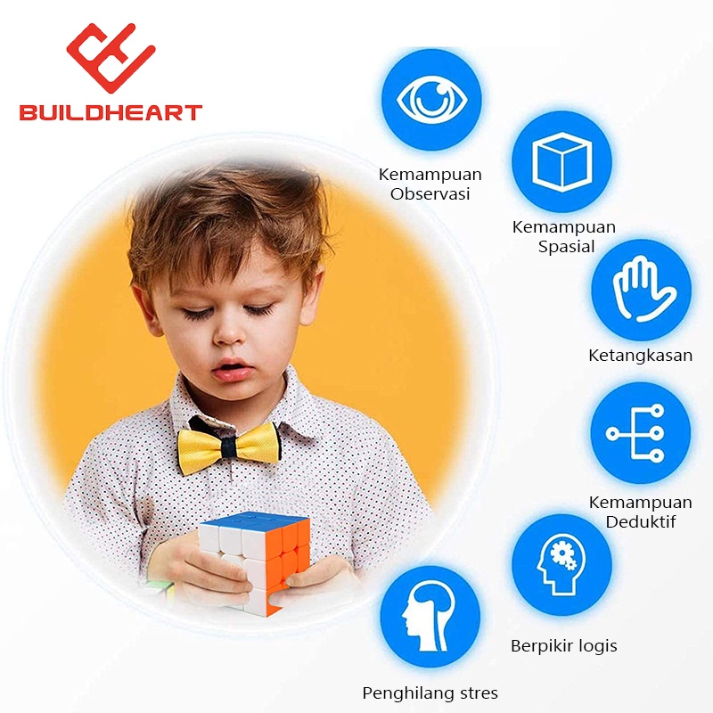 BUILDHEART 3X3X3 MAINAN KUBUS RUBIK,RUBIK 3X3 TANPA STIKER, KUBUS RUBIK MAINAN PENDIDIKAN