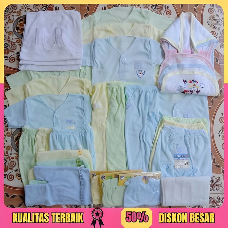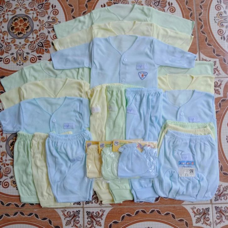 34Pcs Paket Polos Pakaian Bayi Baru Lahir 0 6 12 Bulan Baju Bahan Premium Halus Laki Laki Perempuan Stelan Newborn