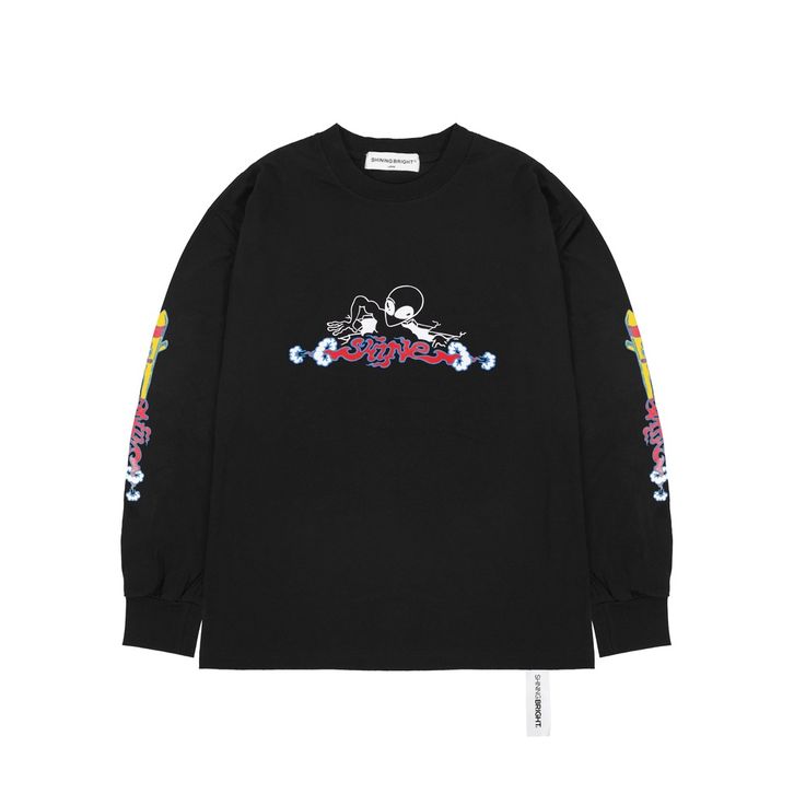 Sweater Crewneck Pria Hitam Ori Shining Bright On The Plane Long Sleeves - Black