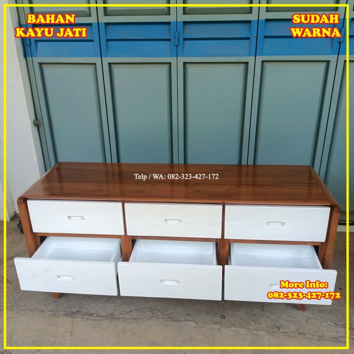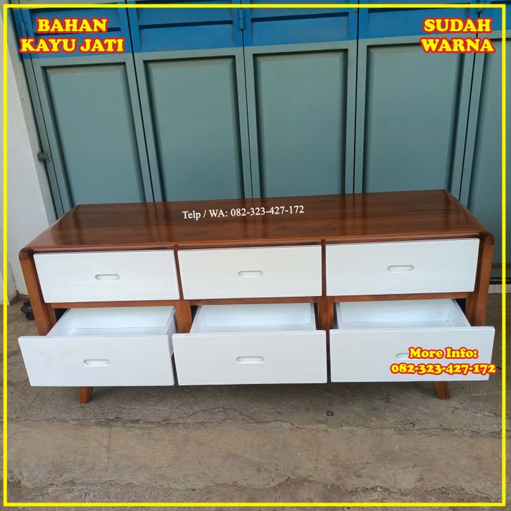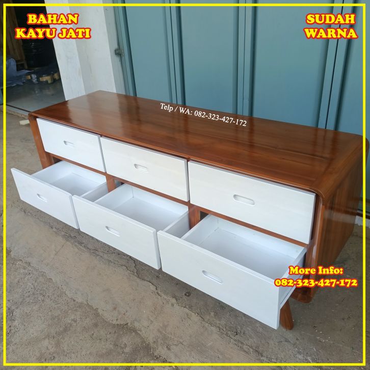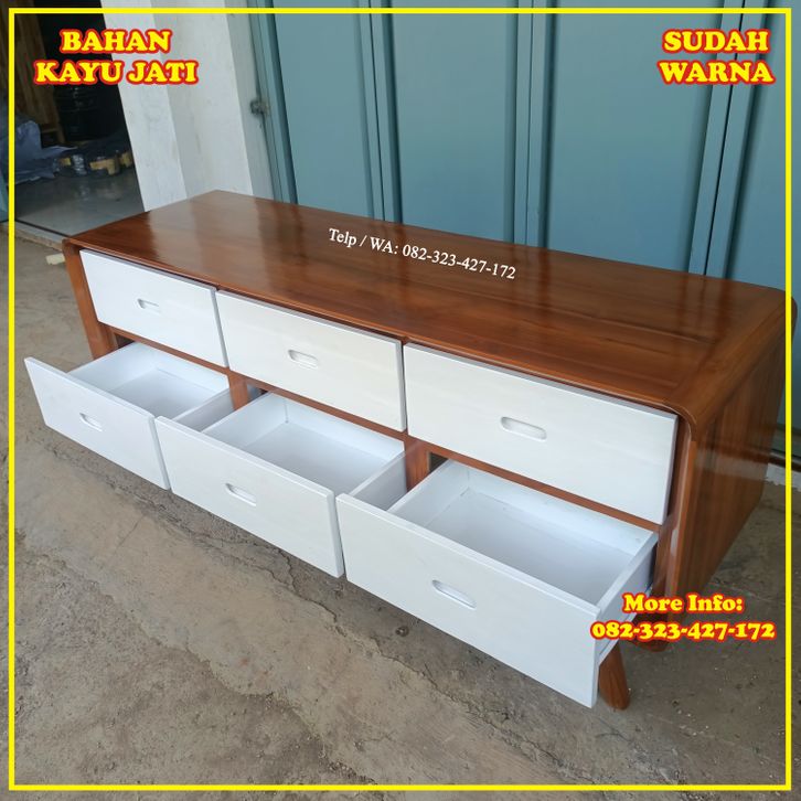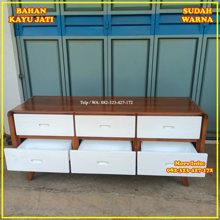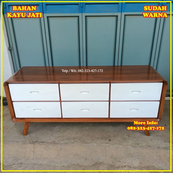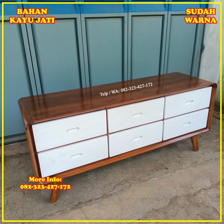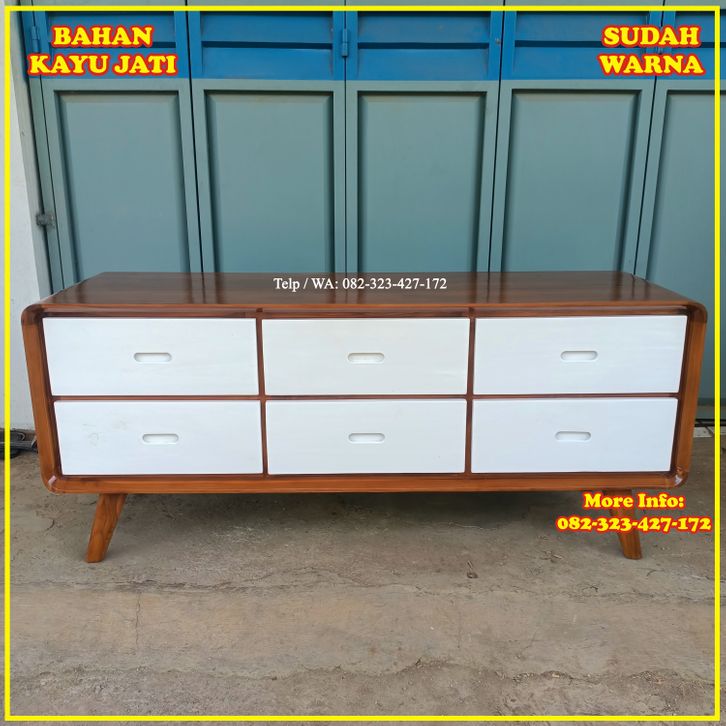 bufet tv retro kayu jati laci 6, rak tv minimalis duco