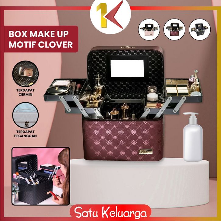 SK-K1 Box Makeup Kosmetik Beauty Case Multifungsi Motif Clover Cantik / Kotak Kosmetik Portable / Make Up Case Tas