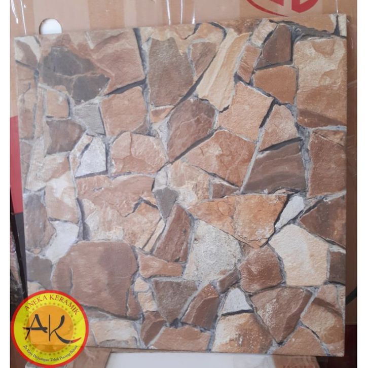 Keramik Lantai Teras Garasi Dinding Motif Batu Alam Timbul 40x40 Riverstone Gold