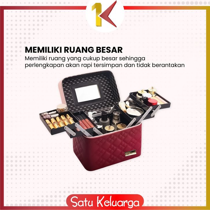 SK-K1 Box Makeup Kosmetik Beauty Case Multifungsi Motif Ketupat Elegan / Kotak Kosmetik Portable / Make Up Case Tas