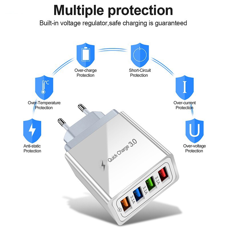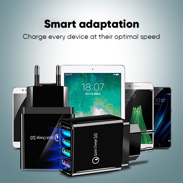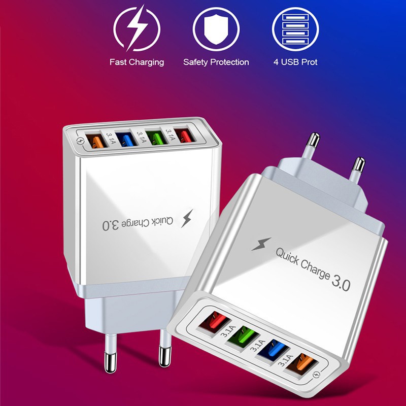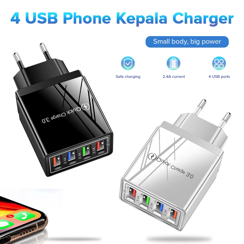 ADAPTOR PENGISI DAYA USB QC 3.0 4 PORT USB 33W PENGISIAN DAYA CEPAT+LAMPU LED