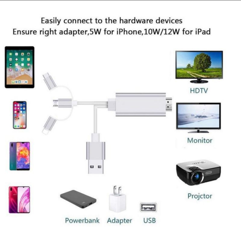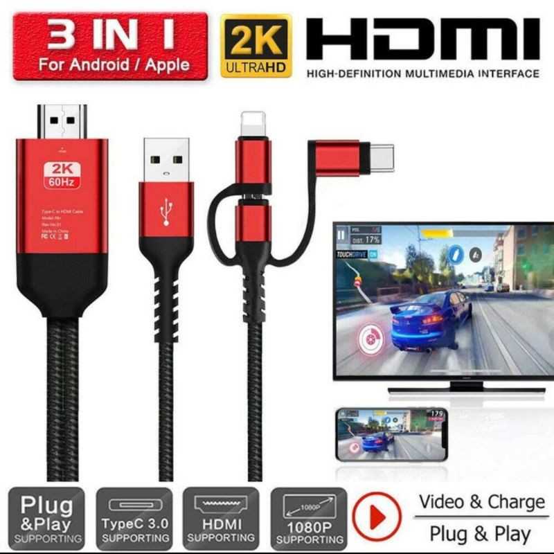 PROMO KABEL MHL 3 IN 1 HP ANDROID IOS KE TV HDTV HDMI MICRO USB TYPE C IPHONE LIGHTNING CONVERTER