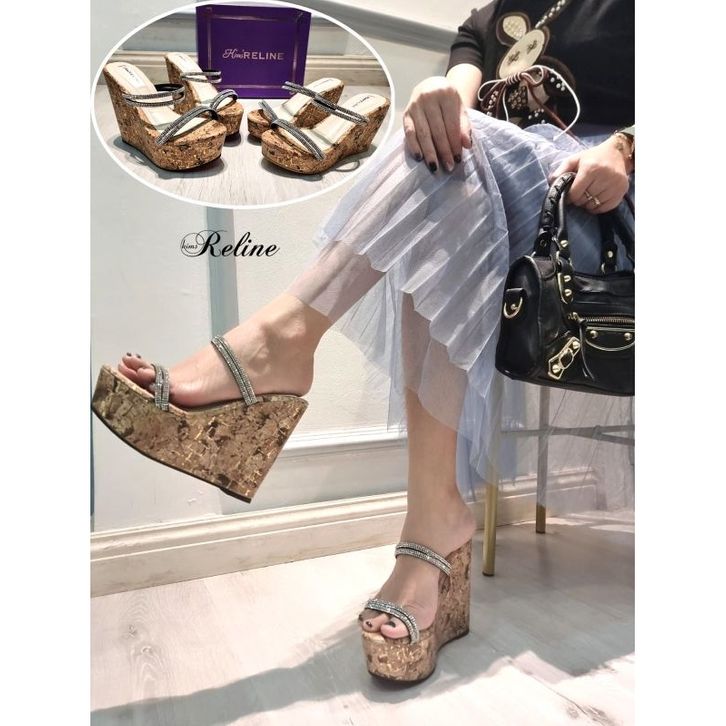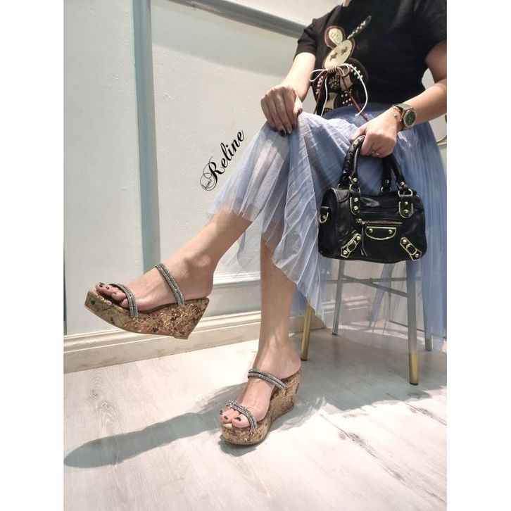 GRATIS ONGKIR SANDAL WEDGES RELINE 3110 WOOD BLINK TINGGI 12 & 7CM