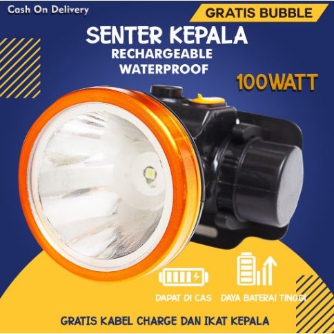 SENTER KEPALA 100 WATT LED HEADLAMP SUPER TERANG OUTDOOR ANTI AIR WATERPROOF ZOOM