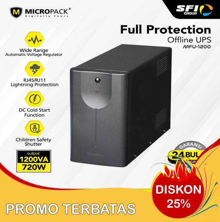 100% ORIGINAL MICROPACK UPS OFFLINE PREMIUM STABILIZER ANTI PETIR 1200VA / 720W / Battery 7Ah - ( MFU-1