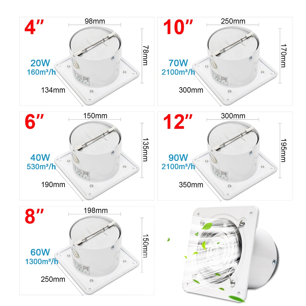 READY STOCK KIPAS DAPUR 4/6/8/10/12'' EXHAUST FAN KIPAS EXHAUST VENTILASI DINDING KIPAS KAMAR MANDI METAL BLADES 220V BO