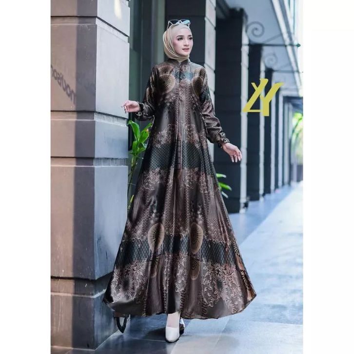 INARA DRESS |Jumbo Ready |Gamis Motif Silk Premium/Gamis pesta Silk Premium /Gamis Semi sutra /Busui/Gamis Silk Brown Se