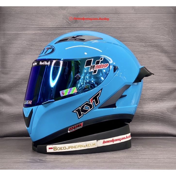 HELM KYT FALCON FR SOLID SKY BLUE HELM KYT FULL FACE FALCON FR SOLID VISOR IRIDIUM SPOILER 2D 3D DOUBLE PAKET GANTENG