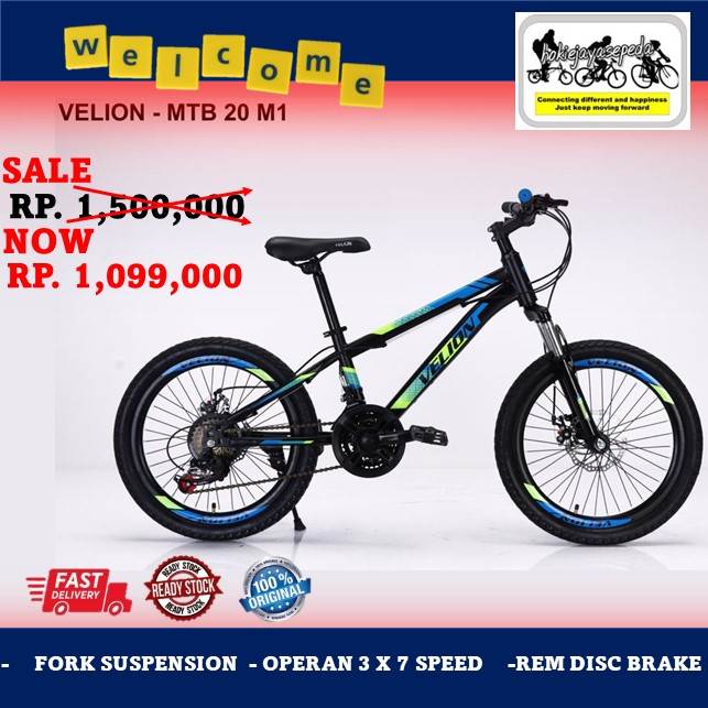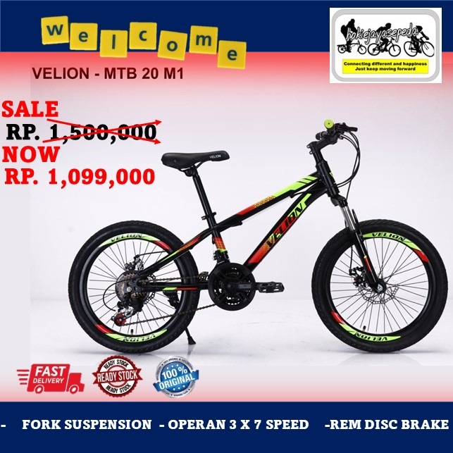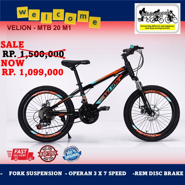 SEPEDA GUNUNG MTB ATLANTIS - VELION 20 INCH FORK SUSPENSI DAN OPERAN UNTUK ANAK 9 -14 TAHUN BONUS KAKI BOTOL