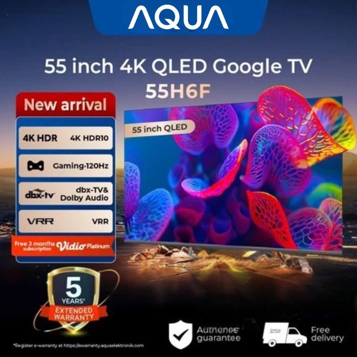 TV AQUA SMART DIGITAL 55 50 43 40 32 INCH 4K HDR GOOGLE TV BEZEL LESS RAM 2GB ROM 32GB ANDROID BLUETOOTH