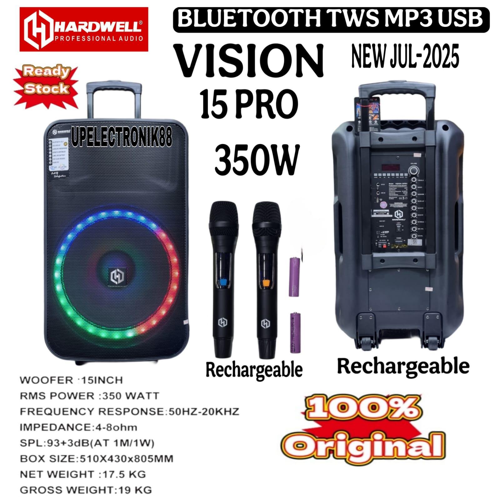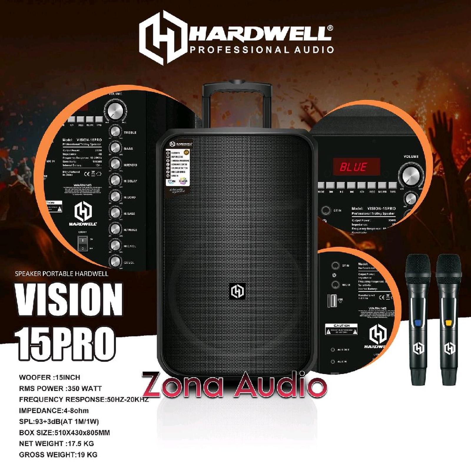 Speaker Portable Hardwell VISION 15Pro 15 Inch 350 Watt 2 Mic Wireless Rechargerable Garansi Original