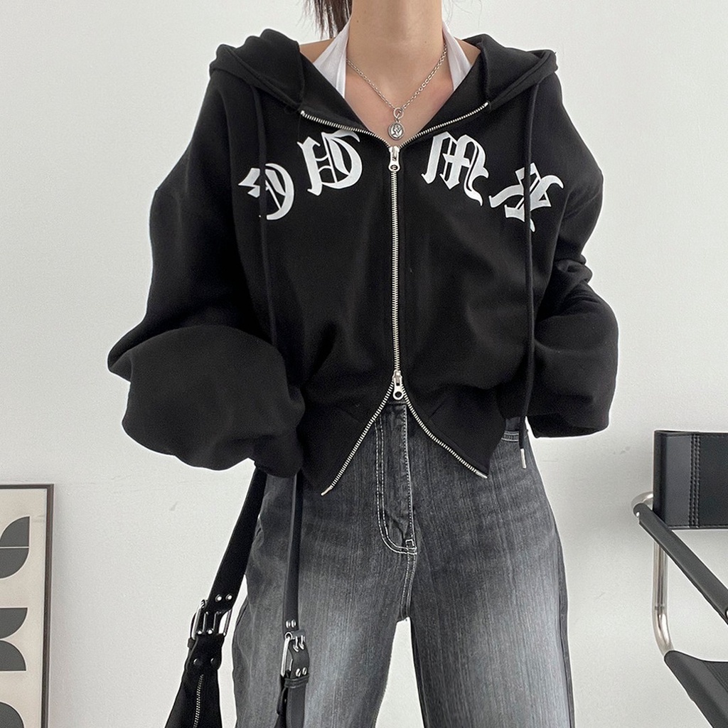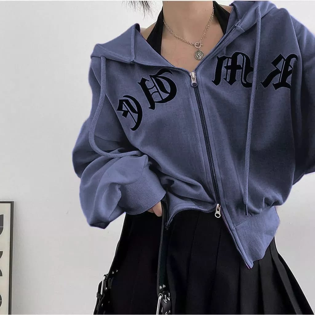 HOODIE SWEATER JAKET WANITA DOUBLE ZIPER CEWEK KEKINIAN KOREAN JAPANESE STYLE LUCU