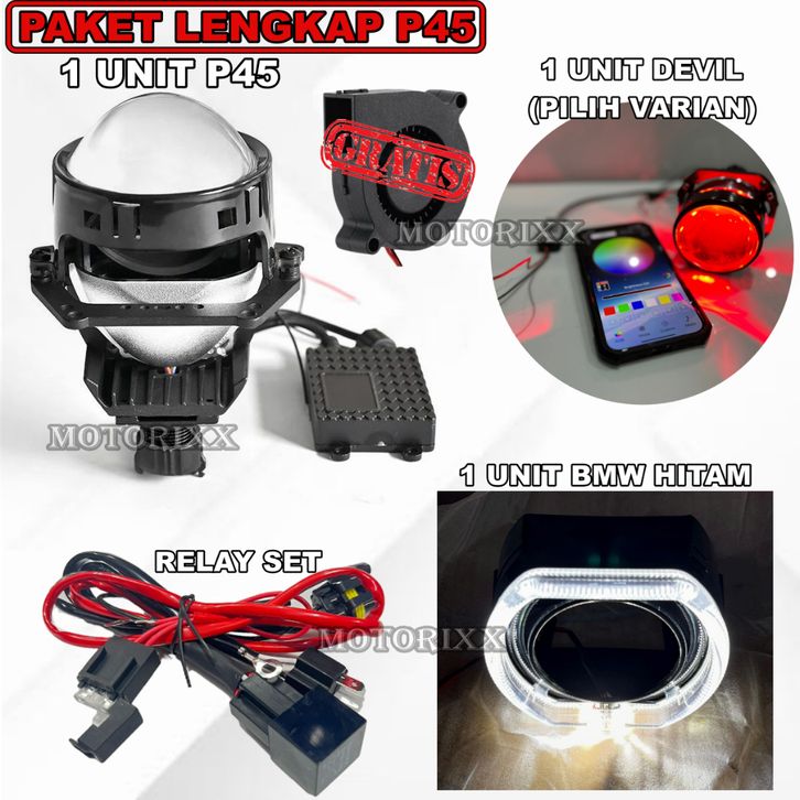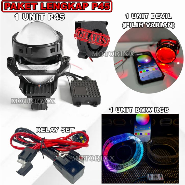 1 PCS P45 , 1 UNIT+BMW RGB , 1 UNIT+BULAT RGB , 1 UNIT+APPOLO , 1 UNIT+MAX RING, 1 UNIT+BMW HITAM , 1 UNIT+RING COB