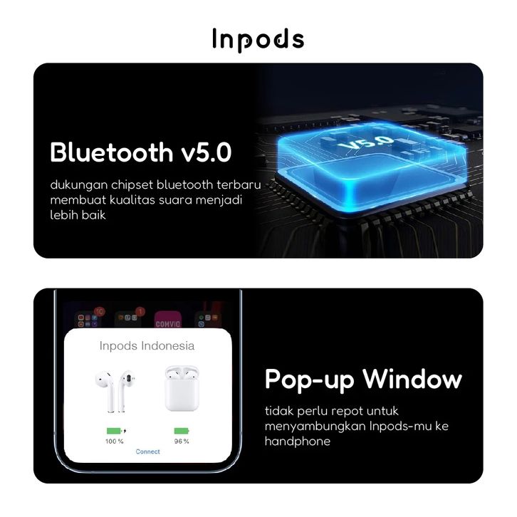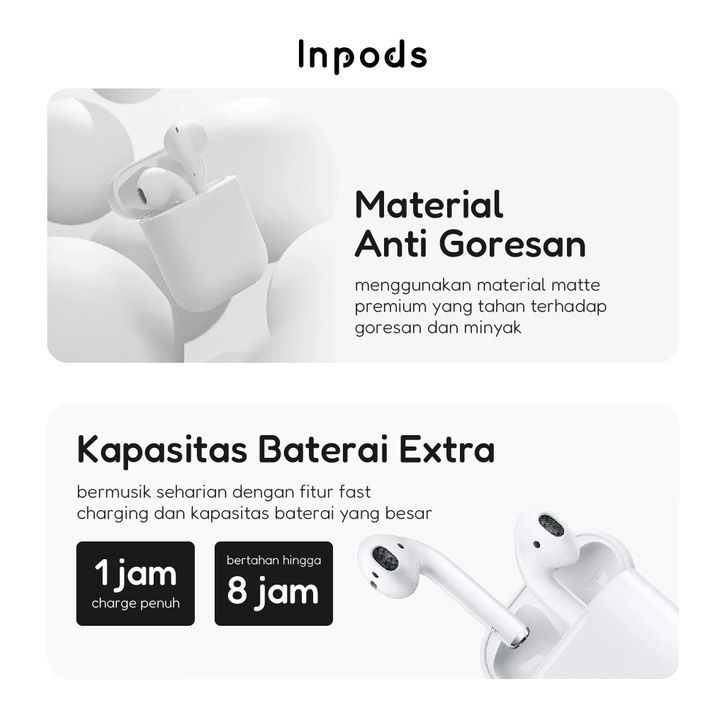 Headset Bluetooth Pro i12-Tws iOS & Android InPods Original