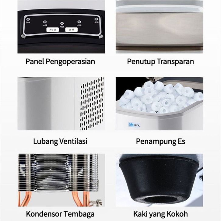 Mesin Es Iceler Portable Ice Maker 15KG Es Perhari 6 Keping Es diproduksi,Mesin Rumahan Kecil Full Otomatis