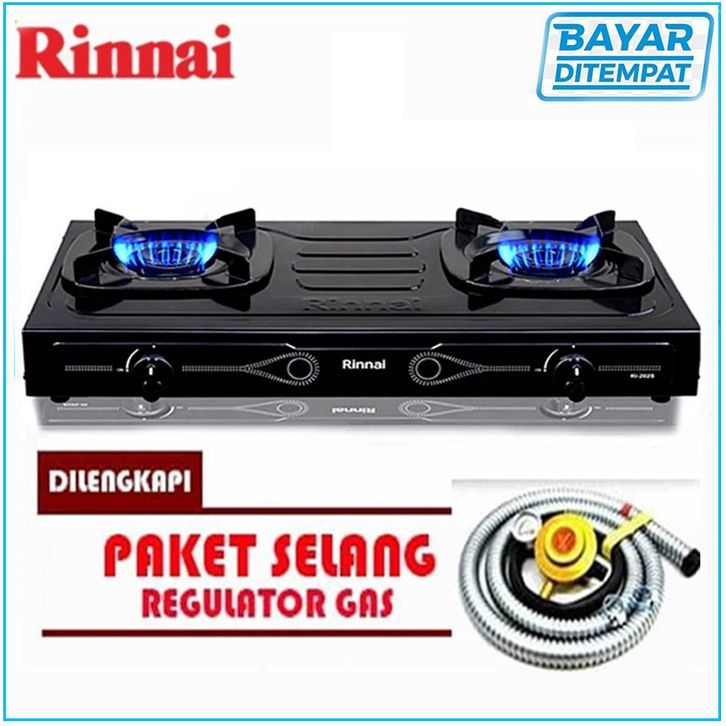 Kompor Gas Rinnai Ri 202S Kompor Gas 2 Tungku Teflon Free Selang Paket Regulator Murah