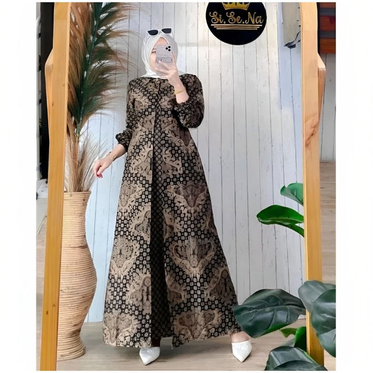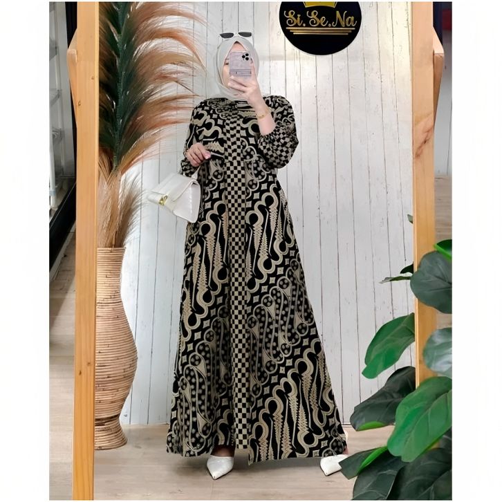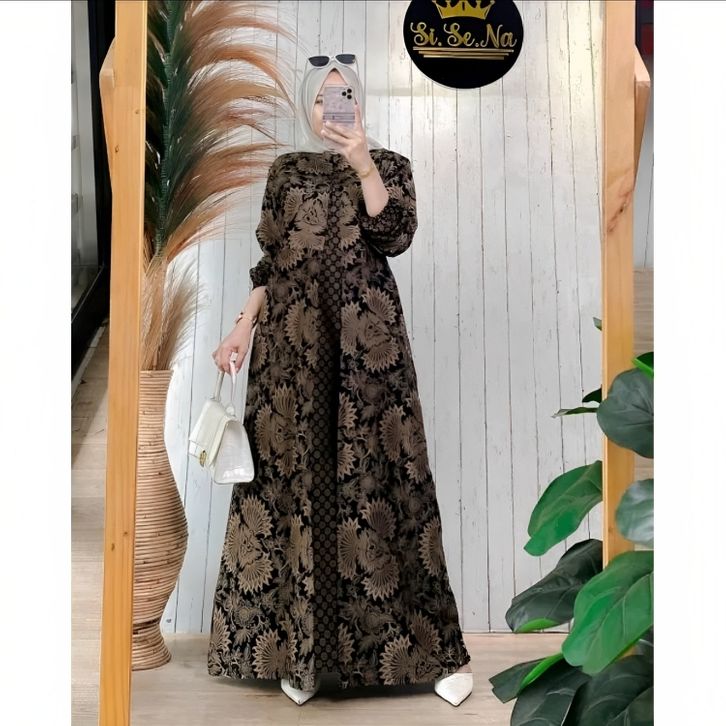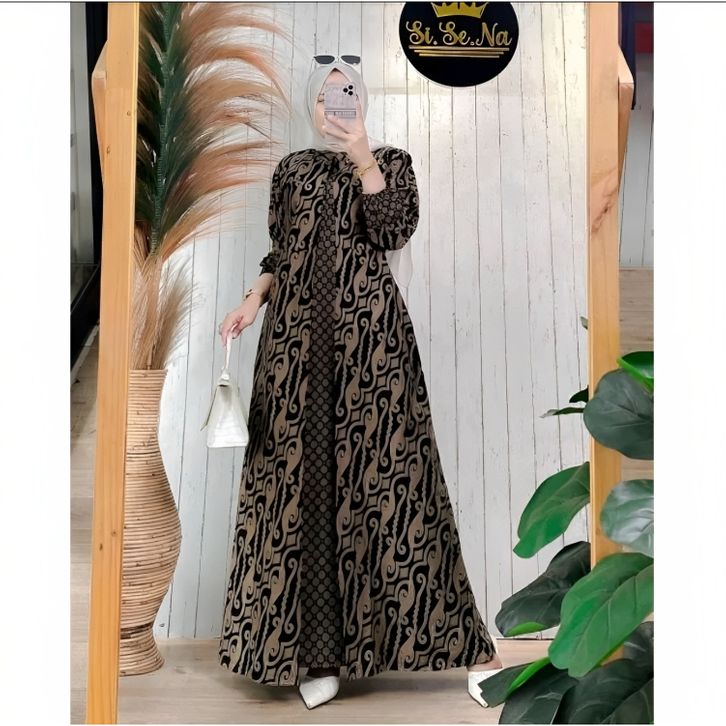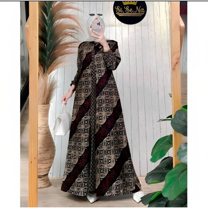Baju Gamis Batik Wanita Modern Kombinasi Polos Pekalongan Jumbo Lebaran Terbaru