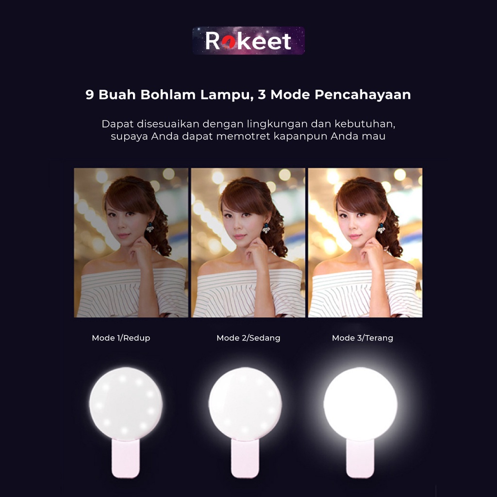 ROKEET MINI RING LIGHT PORTABLE CLIP SELFIE LAMPU LIVE STREAMER LED 3 KECERAHAN