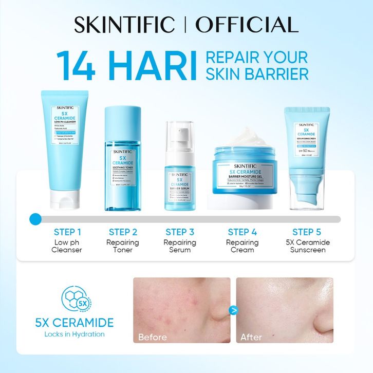 SKINTIFIC 5IN1 FULL SERIES SKINCARE SET 5X CERAMIDE SERUM MOISTURIZER GEL TONER SUNSCREEN CLEANSER MOUSSE FACIAL WASH