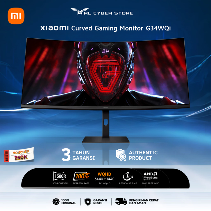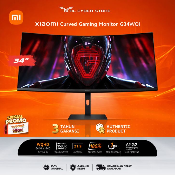 Xiaomi G34WQi CURVED 34 INCH WQHD 180HZ MONITOR GAMING MONITOR 34 INCH KOMPUTER/COMPUTER PC GARANSI RESMI
